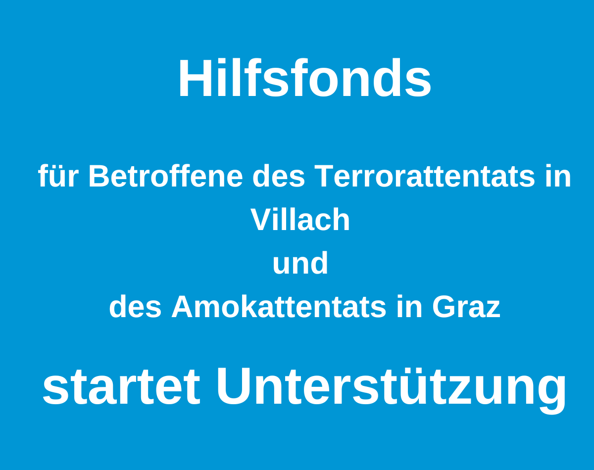 Nunmehr steht ein Fonds zur Unterstützung der Betroffenen des Amokattentats in Graz und des Terrorattentats in Villach zur Verfügung.